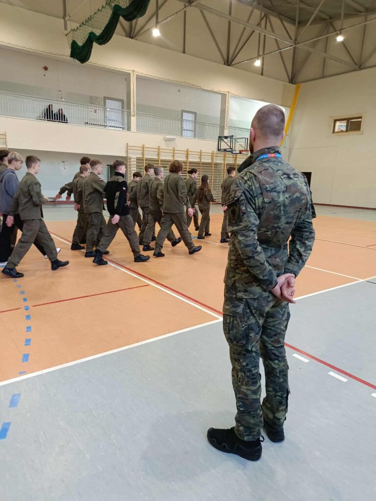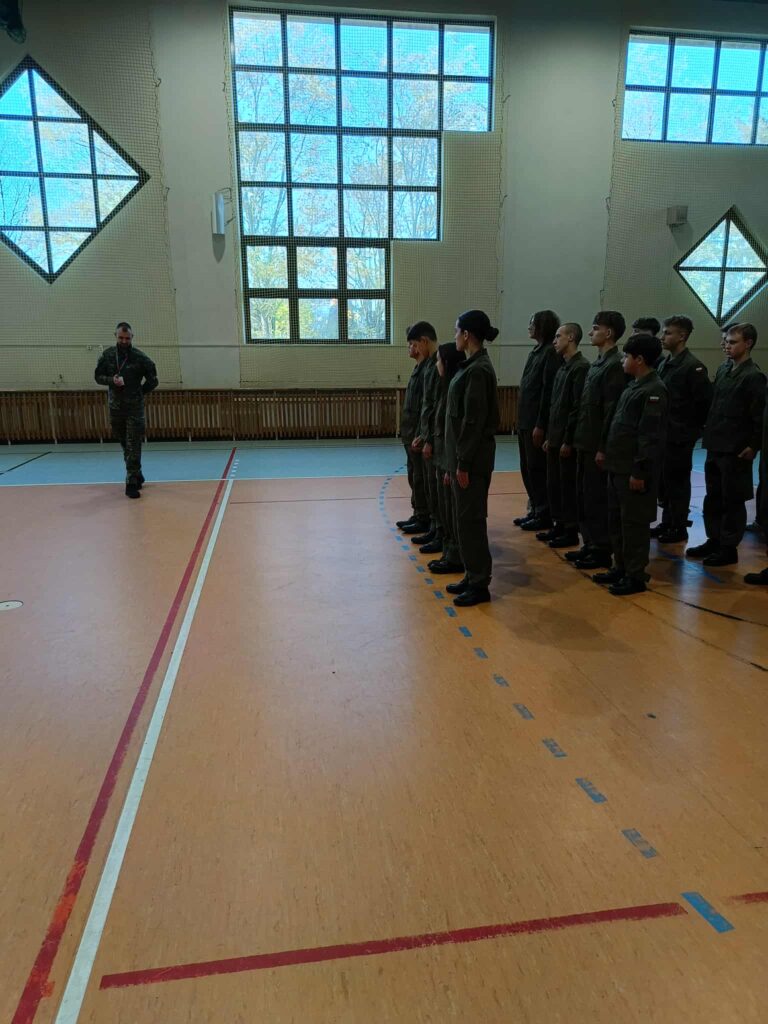 W dniu 05.11.25r. uczniowie klasy mundurowej oraz klas oddziału przygotowania wojskowego uczestniczyli w zajęciach przeprowadzonych przez funkcjonariusza placówki Straży Granicznej w Tarnowie. W trakcie zajęć uczniowie doskonalili umiejętności z zakresu musztry indywidualnej i zespołowej.