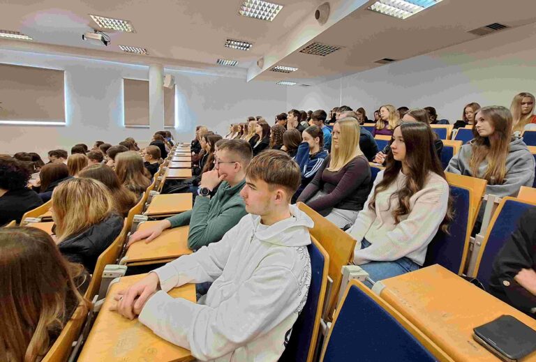 W piątek 27 lutego młodzież z klasy 1b i 2b realizująca rozszerzenie z chemii uczestniczyła w wykładzie naukowym z chemii na temat: „Żywioły, ciastka i układ planet, czyli