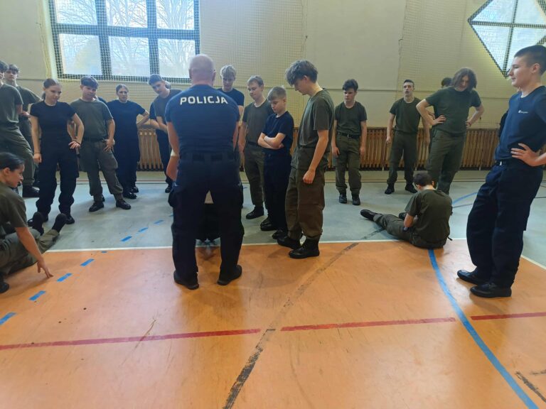 W dniu 02.03.26r., w ramach zajęć z technik interwencji funkcjonariusze z Komendy Miejskiej Policji w Tarnowie przeprowadzili szkolenie w tym zakresie w I klasie LO